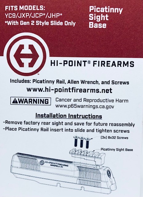 NOTICE: This kit will only work on models YC9, JXP10, MODEL JHP 45 GEN2 and MODEL JCP 40 GEN2 .